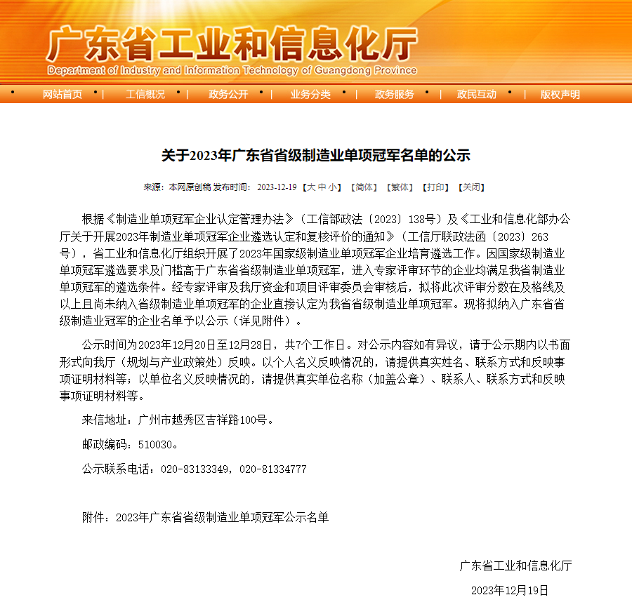 HTH.COM-华体会huatihui高能荣获“2023年广东省制造业单项冠军”